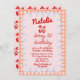 If you looking for a elegant and easily edited unique girl 1st birthday invitation, this one is perfect for you. As you see, it features red magenta hand written script with whimsical Natalie berry 1st birthday on pink background. And red hand drawn two strawberries . Inside a blue wavy hand drawn frame and orange watercolor stripes. And hand drawn strawberries pattern in red magenta colour on the back and changeable photo on the back. With whole info that can be customised easily by clicking on the personalise button. This Quirky and unique trendy birthday invitation is also a digital virtual e-invitation if you want to send it by email or text. So grab it and make your invites truly engaged.