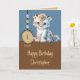 1st birthday 1 today name cute leopard blue card