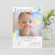 Bright and colourful balloons birthday photo invitation for baby's 1st birthday or any age. Light hearted and festive helium balloons in tropical shades of fuchsia pink, tangerine orange and turquoise blue decorate the photo frame and delicate hand script grey fonts coordinate well. Party date in a modern geometric circle with a minimalist text style.