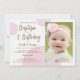 1st Birthday Baptism Photo Pink Gold Custom Invitation