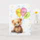 Cute watercolor bear with balloon bouquet for a first birthday.