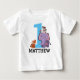 This adorable baby boy t-shirt features a design with an purple elephant with a monkey and little bird, and a lttle baby tiger with a large, blue number one. Personalise this t-shirt with the name of your choice.