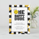 1st birthday boy One happy dude happy emoji Invitation card, Celebrate your little one's big day with our "One Happy Dude" chequered happy emoji 1st birthday invitation! Featuring smiling emoji
