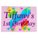 It’s a joyous 1st birthday celebration with this rainbow butterfly personalised 1st birthday gift bag letting everyone know this 1 year old is a special gift from above. Your bundle of joy 1 year old is ready to party and rejoice in the day she was born with her birthday celebration with personalised party goods. What a joyous way to celebrate this heavenly Baby’s first birthday. Make your delightful 1 year olds birthday party that much more special with personalised and custom paper plates, napkins, and cups.