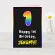 1st Birthday: Colourful Rainbow # 1, Custom Name Card