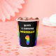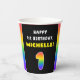 This joyful and cheerful birthday themed paper cup design features a big number “1“ with a multicolor rainbow spectrum inspired gradient pattern, along with the message “HAPPY 1st BIRTHDAY,”, and a customisable recipient name. Birthday themed paper cups like this might be fun to use at a party being held for somebody who is celebrating their 1st birthday. [~Z0000639]