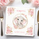 Cute wrapping paper with a baby elephant girl and flowers, soft pastel pink and beige ''golden'' colours. Cute and elegant design for a little girl's Birthday and more.. Everything is placed on a white background. Easily personalise the text and number of the birthday or leave it blank - Kate Eden Art