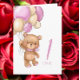 1st birthday cute pink balloons girl teddy card