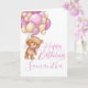 1st birthday cute teddy pink balloon girl card