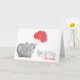 Personalized 1st birthday card, with an elephant with pink balloons.