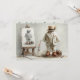 Celebrate your little gentleman’s first birthday with Parisian flair and artistic imagination. This hand-drawn invitation features a baby-sized three-piece suit with shorts, a tailored jacket, and a sweet bow tie, styled on a baby mannequin. The look is completed by painter’s brushes, an easel with sketched art, and splashes of watercolor inspiration in the background — evoking a charming French art studio.