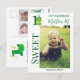 This is a funny and cute birthday party invitation inspired by frogs. The template is ready to use add your own message, kid name, date, place, time, R.S.V.P., and even photos of the baby on the front and backside of the invitation postcard! What makes unique this birthday party invitation is the possibility to add 5 different photos like milestones from cero month - 12 months, is more than an invitation is a photo album of the baby this invitation is also perfect for a frog theme party. Customise yours now!