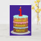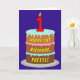 The front of this fun and joyful birthday greeting card design features a depiction of a three-tier birthday cake having a numeral-shaped candle on top showing the number “1“, along with the message “HAPPY 1ST BIRTHDAY,”, and a custom recipient name. The inside features a customised birthday greeting message, or could perhaps be cleared and left blank if a message is to be written by hand instead. An upbeat, personalised birthday greeting card like this might be a fun way to send a birthday greeting message to somebody who is celebrating their first birthday. [~Z0000620]