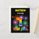 The front of this fun and vibrant birthday party invitation postcard design features a customisable name, an exciting bursting celebratory fireworks inspired pattern, and the message "1 YEARS OLD!" having a colourful rainbow spectrum inspired gradient pattern. The back features a personalised message that could describe when and where the party is being held, in addition to other relevant information. Invitation postcards like this could be sent to potential attendees of a birthday party being held in celebration of somebody’s first birthday. [~Z0000452]