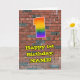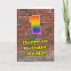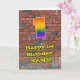 This vibrant and fun urban graffiti and street art inspired birthday greeting card design features a large number “1” with a colourful rainbow spectrum gradient inspired pattern, along with the message “Happy 1st Birthday,”, and a personalised name. The background of the front features a brick wall pattern. The inside features an editable birthday greeting message, or could perhaps be cleared and left blank if a message is to be written by hand instead. A vibrant, personalised birthday greeting card like this might be sent to celebrate somebody’s first birthday. [~Z0000586]
