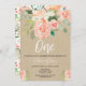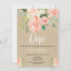 1st birthday girl peach rustic kraft floral invitation