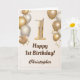 1st Birthday Gold Balloons and Confetti Birthday Card