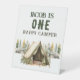 1st Birthday Happy Camper Kids Birthday Party Pedestal Sign
