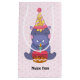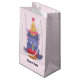 A cute baby hippo wearing a birthday hat with a big 1 on it sits in front of her birthday cake. Adorable 1st birthday gift bag for your little one's gifts.