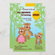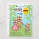 Wild bears are very dear to kids. Invite your family and your friends to your sweet bo family birthday party using this cute invitation. A bear family dressed to party is celebrating the first year of life of their little bear's life in the forest! The cub is holding a balloon. All the words in this invitation are easy to customise with your personal details like names, date and time; change the font or colour as you like. The reverse side features the silhouette of the forest, a yellow balloon going up in the air, and colourful confetti.