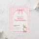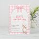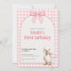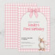 This sweet first birthday invitation features a soft pink gingham background with a charming watercolor duck and bow design. Perfect for celebrating a little girl’s first birthday, this invitation feels playful, gentle, and timeless.