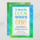 Beautiful blue green yellow l tones, bright, bold and complimentary colours. Great design for birthday invitation and clever 1st birthday wording.
