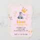 A first birthday invitation design inspired by a playful and loving atmosphere. The design features a soft background in bright colours with touches of gold to add an elegant flair, focusing on celebrating this special day. The invitation is customisable according to personal taste.