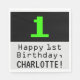 This geeky and fun birthday themed paper napkin design features a large green classic computer game style number "1" on a black coloured background. It also features the birthday greeting message "Happy 1st Birthday,", and a personalised name. Fun, customised birthday themed paper napkins like this might be used at somebody’s first birthday celebration. [~Z0000404]