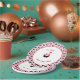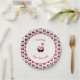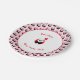 This smiling panda has a red balloon to celebrate a one year old's birthday. Editable text - add a name and a birthday greeting for example. There is a pattern of more smiling pandas on a pale pink background around the edge of the plate.