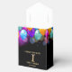 1st Birthday Party Black and Gold Colourful Balloons and Confetti Favour Box. For further customisation, please click the "Customise it" button and use our design tool to modify this template.