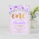 1st Birthday Party - Gold Purple Invitation