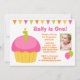This adorable First Birthday Party invitation can be personalised with your child's photo. Features a pink cupcake and birthday balloons. Makes a great keepsake of your child's first birthday party.