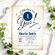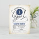 1st Birthday Party Invitation in Navy Blue White Black with retro creamy background. Cheers to 1 year! Can be personalized into any year.