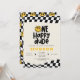 1st birthday smile face retro black, white and yellow groovy lightening bolt cool birthday invitation.