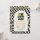 1st birthday smile face retro black, white and yellow groovy lightening bolt cool birthday invitation.