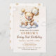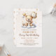 1st Birthday Teddy Bear with Brown Balloons Invitation