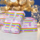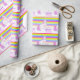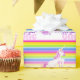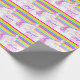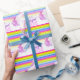 Unicorn watercolor rainbow stripe patterned 1st birthday wrapping paper. Personalise with your own name, currently reads Happy Birthday Abigail One. Cute whimsical chantering unicorn painting and design by Sarah Trett www.sarahtrett.com for www.mylittleeden.com on zazzle.