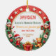 Celebrate your little one’s first holiday season with our Elf & Ever After custom ceramic ornament. This cheerful keepsake features your baby’s photo surrounded by a playful parade of Christmas elves, teddy bears, candy canes, and wrapped gifts—all set against a festive red border sprinkled with white stars and pine greenery. It’s a joyful tribute to the magic of baby’s first Christmas, bursting with color, warmth, and wonder.