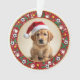 Celebrate the tail-wagging joy of a new beginning with this heartwarming First Christmas ornament, perfect for proud pet parents and their newest furry family member. Featuring a festive red border sprinkled with soccer balls, bones, paw prints, stars, and holly, this ornament wraps your pup’s photo in a heart-shaped hug of holiday cheer.