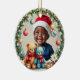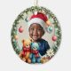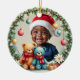 Celebrate your little one’s first holiday season with our Teddy Tidings custom ceramic ornament. Featuring a joyful trio of teddy bears surrounded by festive florals, hanging ornaments, and golden stars, this keepsake captures the wonder of baby’s first Christmas. Personalize both sides with your child’s photo, name, and milestone dates to create a heartwarming treasure that will sparkle on your tree for years to come.