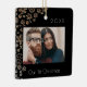 Personalise and add your own photo for your 1st Christmas as a married couple. With the text: Our 1st Christmas, written with a modern white letters. Golden snowflakes ad decor. Black background. Template for your own photo. Template for a year.