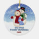 1st Christmas Blue Frosty Snowman Family Ceramic Ornament