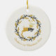 1st Christmas Deer with Wreath Beige Ceramic Ornament