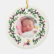 The 1st Christmas Deer with Wreath Customize Ceramic Ornament features a dear with a Forever Endeavor original print encompassed by a wreath with lights. Joyful and En-deer-ing. Customizable. Bundle this ornament with matching items in this collection to create a fun gift.