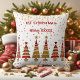 Artistic & beautiful Christmas trees with gold 1st Christmas decor throw pillow for babies. Personalised Quote, Christmas Message with illustrations of gold Christmas ornaments on a snowflakes background. This cute pillow delivers the message and spirit of Xmas. Use the placeholders for TEXT to customise the card by clicking 'Personalise' button. Put Baby's Name in the Placeholder 'XXXXX'. Edit using Design tool for your choice of font style and format. If you like my artwork, visit 'ChristmasGallery' store for more such products.
