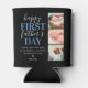 First fathers day can cooler featuring the message "happy first father's day", a modern saying that reads "some men are born father's, and that someone is you!", with a cute blue heart, and your childs name. Plus 6 family photos for you to customise with your own to make this an extra special dad gift.