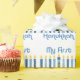 Festival of Lights design for baby's 1st Hanukkah featuring fun blue candles with polka dots and stripes and the Star of David. Text says MY FIRST HANUKKAH. PinkInkArt original!