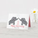An illustrated 1st paper wedding anniversary card in pink, gray and white with an elephant couple.
