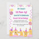Twin Spirit Designs First Paw-Ty birthday invitations feature dogs wearing birthday hats, pink pawprints, balloons, and dog bones. The invitations and all text are customisable for any birthday age.