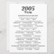 2005 Trivia Game's answer key: 1. A, 2. B, 3. C, 4. B, 5. B, 6. B, 7. A, 8. C, 9. C, 10. A, 11. C, 12. B, 13. A, 14. A, 15. C, 16. A, 17. C, 18. A, 19. B, 20. C.